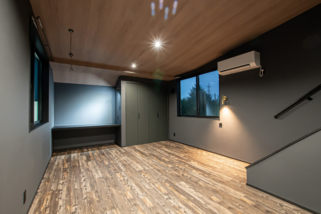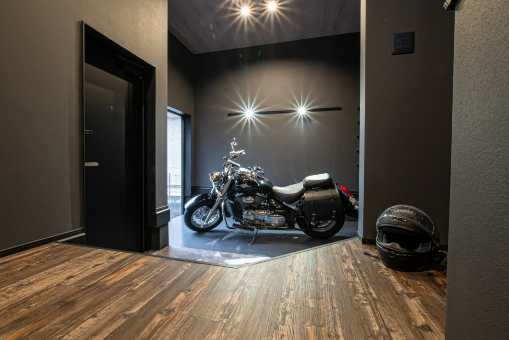 千葉県流山市に位置する「RIDER HOUSE」は、バイクライフを楽しむ方にも心地よい暮らしを提供する、個性あふれるデザイナーズ物件です。室内はダークトーンで統一され、木目調フロアと間接照明が落ち着いた雰囲気を演出。土間スペースには愛車をそのまま置ける広さがあり、ガレージ感覚で使えるのが魅力です。2口ガスコンロのスタイリッシュなキッチン、清潔感ある洗面台など設備も充実。ロフト風の上階スペースはワークスペースや趣味部屋としても活躍します。洗練されたデザインと機能性を兼ね備え、こだわりの暮らしを叶える唯一無二の住まいです